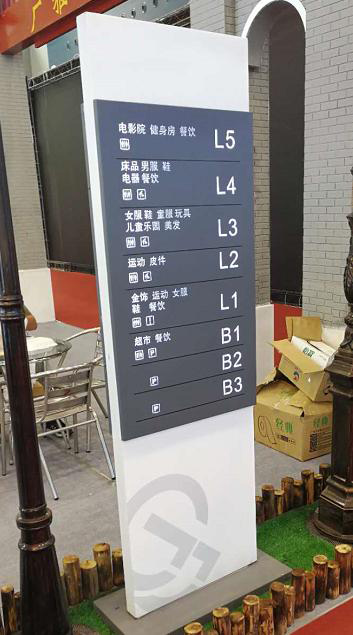 三級(jí)導(dǎo)視:從二級(jí)導(dǎo)視近一步的延伸,進(jìn)入到商場(chǎng)內(nèi)部。指示功能區(qū)域或者工作區(qū)域的。例如:大堂的索引牌、各百貨區(qū)或者功能區(qū)的指示、電梯間的辦公樓層指示牌、懸掛區(qū)域指標(biāo)牌等。